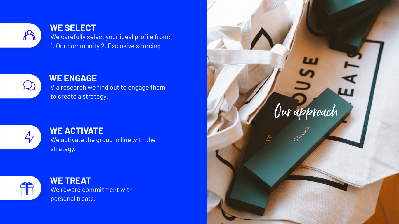 We carefully select your ideal profile from our community and/or your loyalty/CRM base.